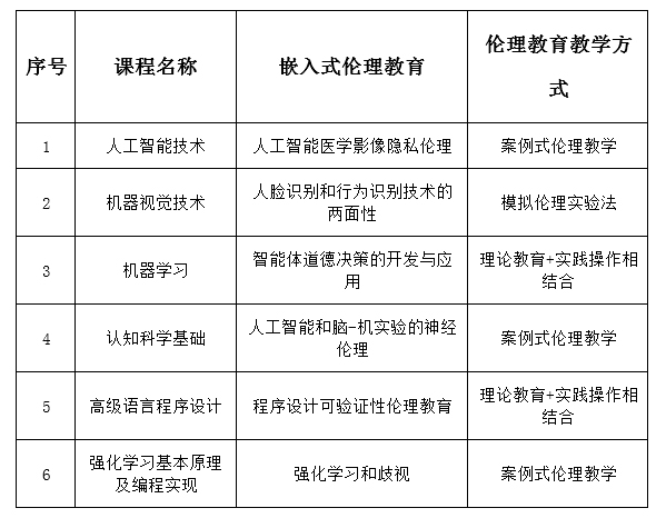 表格:伟德国际victor1946人工智能类课程嵌入式伦理教育