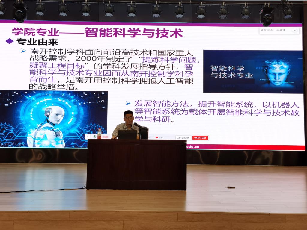 自动化系主任刘忠信教授做了以“共同迈进智能时代”为主体的公司专业及实验室科研介绍,为同学们详细介绍了自动化和智能科学与技术专业的培养目标和培养体系 ,以及各实验室、研究所的研究内容、研究成果,并鼓励同学们可以结合自己的学习兴趣加入相应实验室,不断提高自身的专业素养与科研能力。