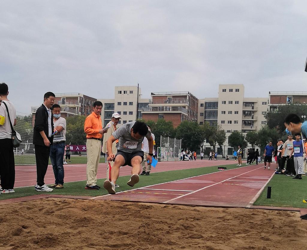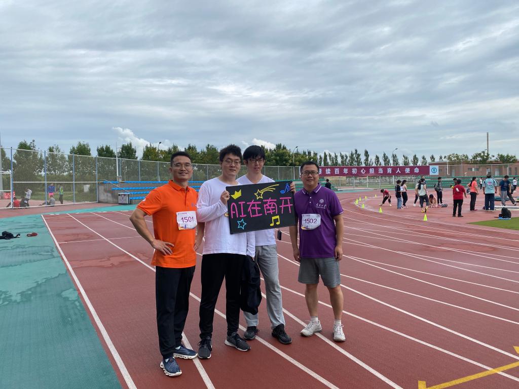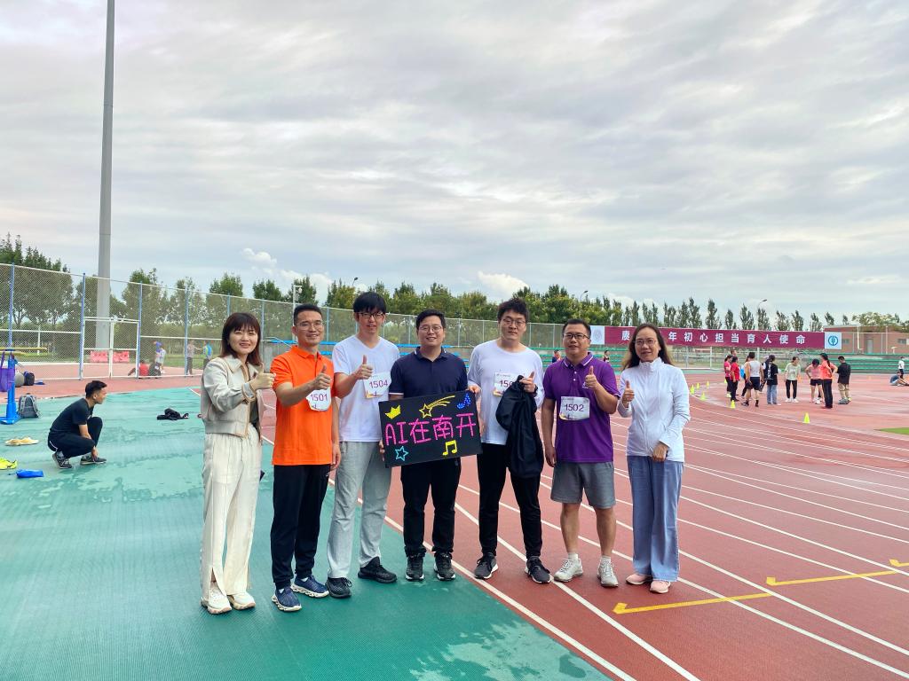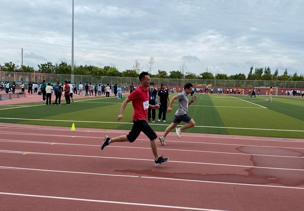 在雨后清凉的赛场,在微湿的跑道,比赛正式开始。虽然天公不作美,但是老师们的参赛热情丝毫不减,“赓续百年初心,担当育人使命”,醒目的横幅标语,提醒着大家教书育人不仅要专业素质过硬,还要德体全面发展。老师们在体育竞技中尽展人工智能的蓬勃朝气与青春活力。