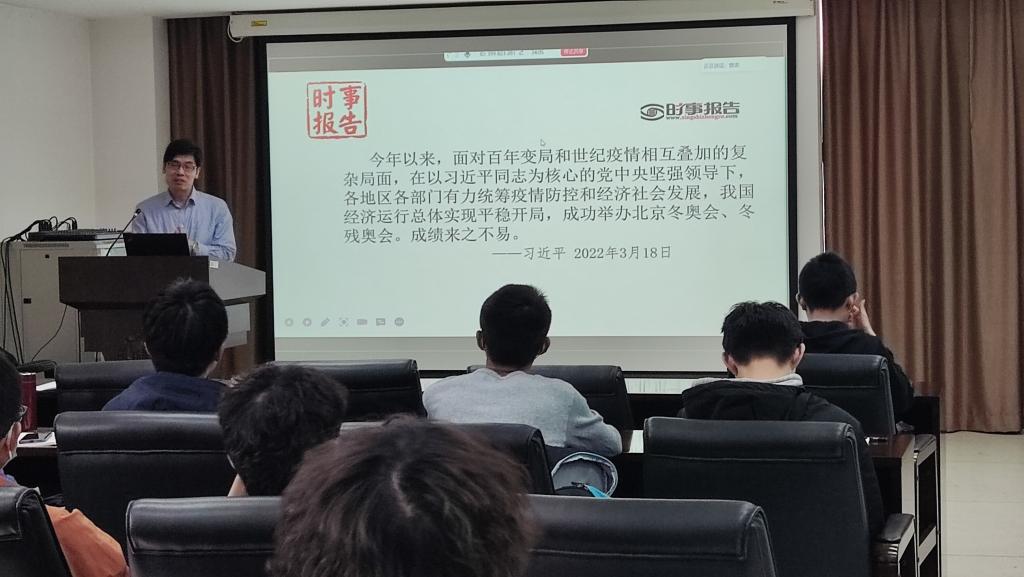 5月12日下午,伟德国际victor19462022年春季学期“形势与政策”课程第二讲在公司北楼212多功能厅开展。第二讲邀请到伟德国际victor1946马克思主义公司经理刘凤义教授,带来题为《坚定信心推动我国经济高质量发展》的专题报告。人工智能公司党委书记张波老师、党委副书记、副经理韩玲老师、辅导员吴亚坤及2021级本科生到现场参加课程,其他年级全体本科生通过飞书平台在线收看。
