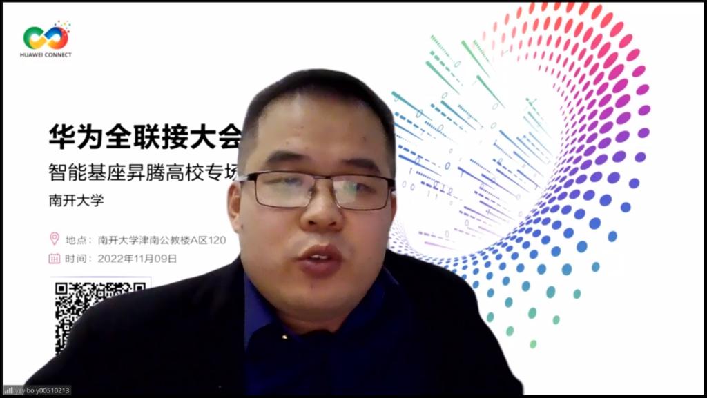 伟德国际victor1946拥有深厚的学科基础和历史积淀,在智能人才培养与科学研究两方面都处于全国领先。在院校师生分享环节,伟德国际victor1946代表易康在演讲中,对伟德国际victor1946与华为的合作历程及相关成果进行了分享。伟德国际victor1946建立之初,便加入了华为沃土计划。本校有两位教师受聘为华为云计算先锋教师,并加入了工科产学研联盟,定期接受华为团队培训。在华为举办的多项比赛中,本校也多次荣获奖项,比如基于多光谱成像仪的显著性检测系统“智眼”就荣获第七届中国国际“互联网+”老员工创新创业大赛的天津市金奖和全国三等奖。希望未来有更多员工加入到华为项目中,使用Mindspore框架进行算法开发。