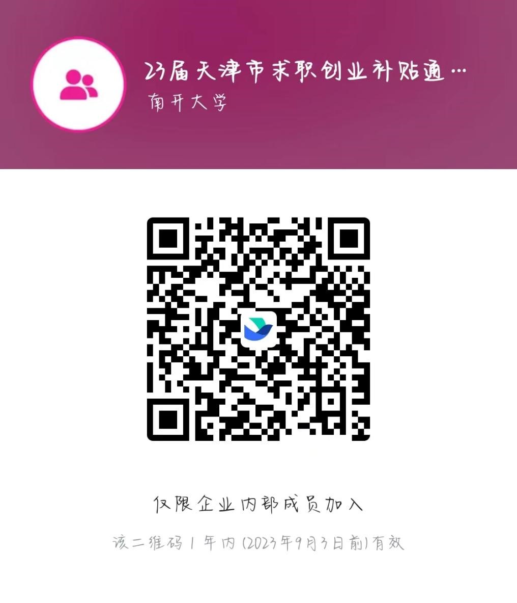 请申请2023届天津市求职创业补贴的同学扫码加入飞书群,今后我们将对申请该补贴的同学进行就业帮扶。