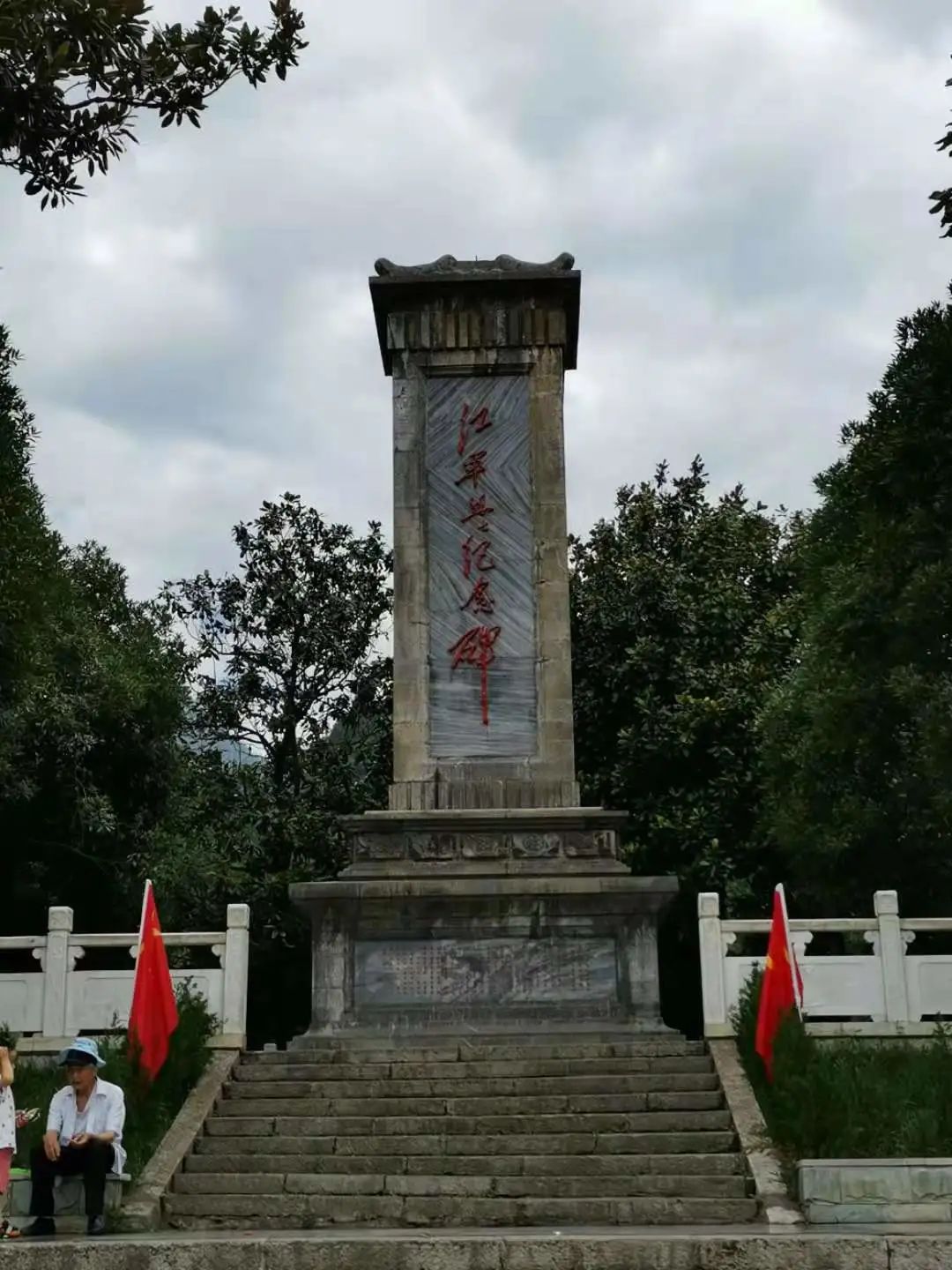 爬上一段山路,我们一行便来到鸡鸣三省的雕像前,雄鸡昂首的方向,便指向当年先辈们前行的目标。其意义之深远,耐人寻味。
