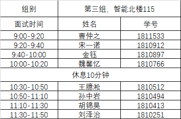 面试将于9月23日(星期四)上午9:00开始,请查看自己的面试组别和时间,至少提前10分钟到教室外候场。面试全程录音录像,不得携带任何通讯工具、电脑等,务必认真严肃对待。面试将综合考察推免生的思想政治素质和品德、专业素养、和综合素质,每位考生面试时间不得少于20分钟。