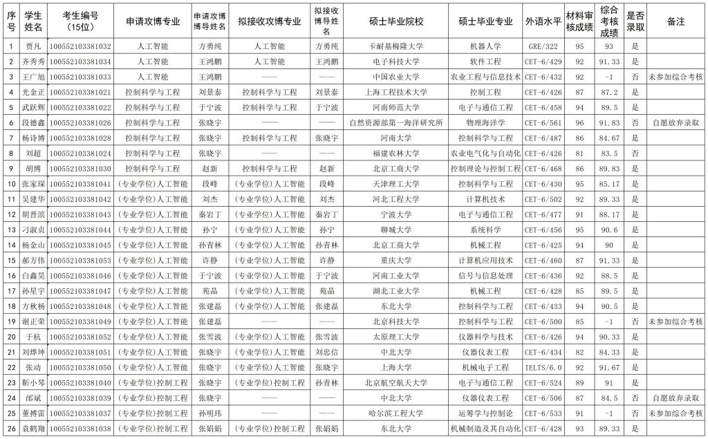 2022级博士研究生申请考核制综合考核情况公示(第二批次学博、专博)