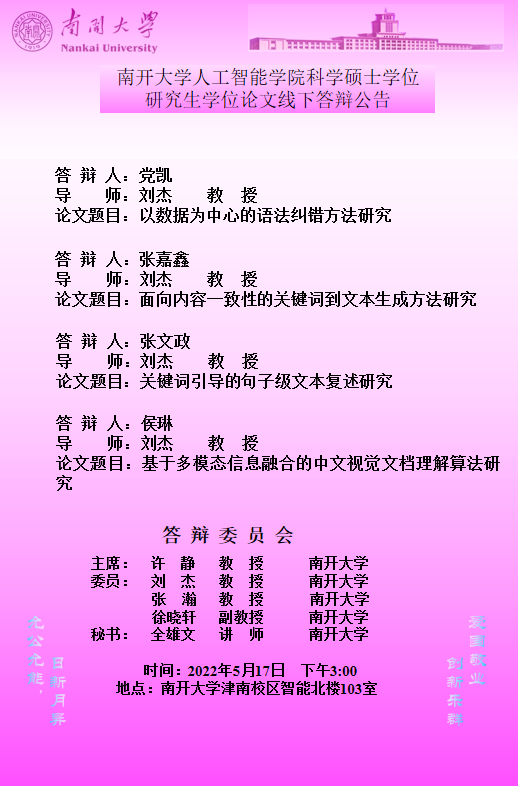【答辩】2022届夏季答辩公告
