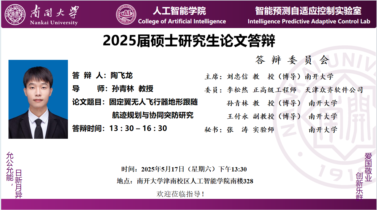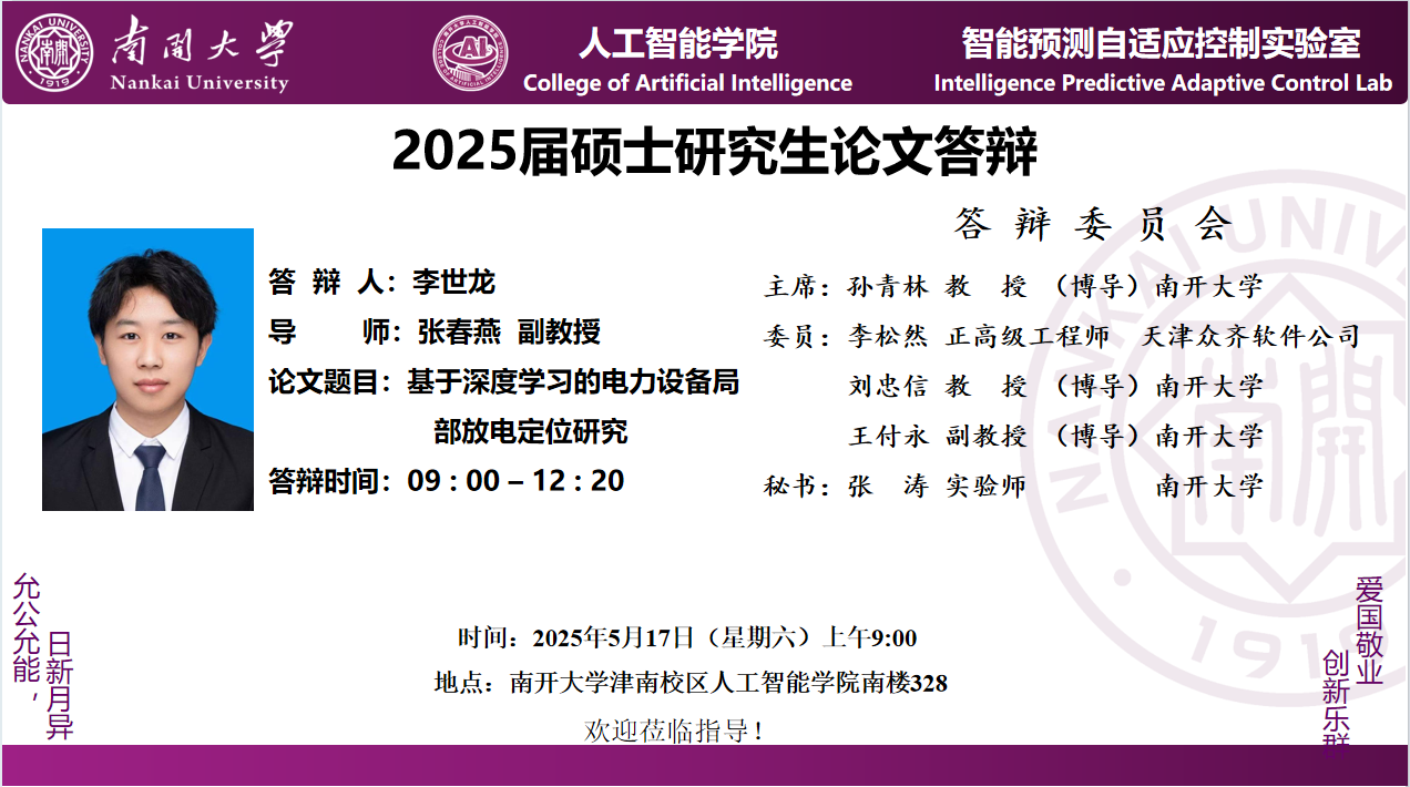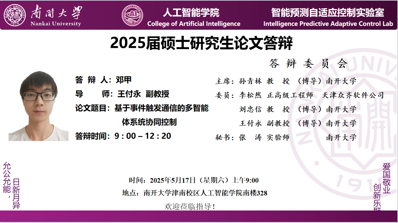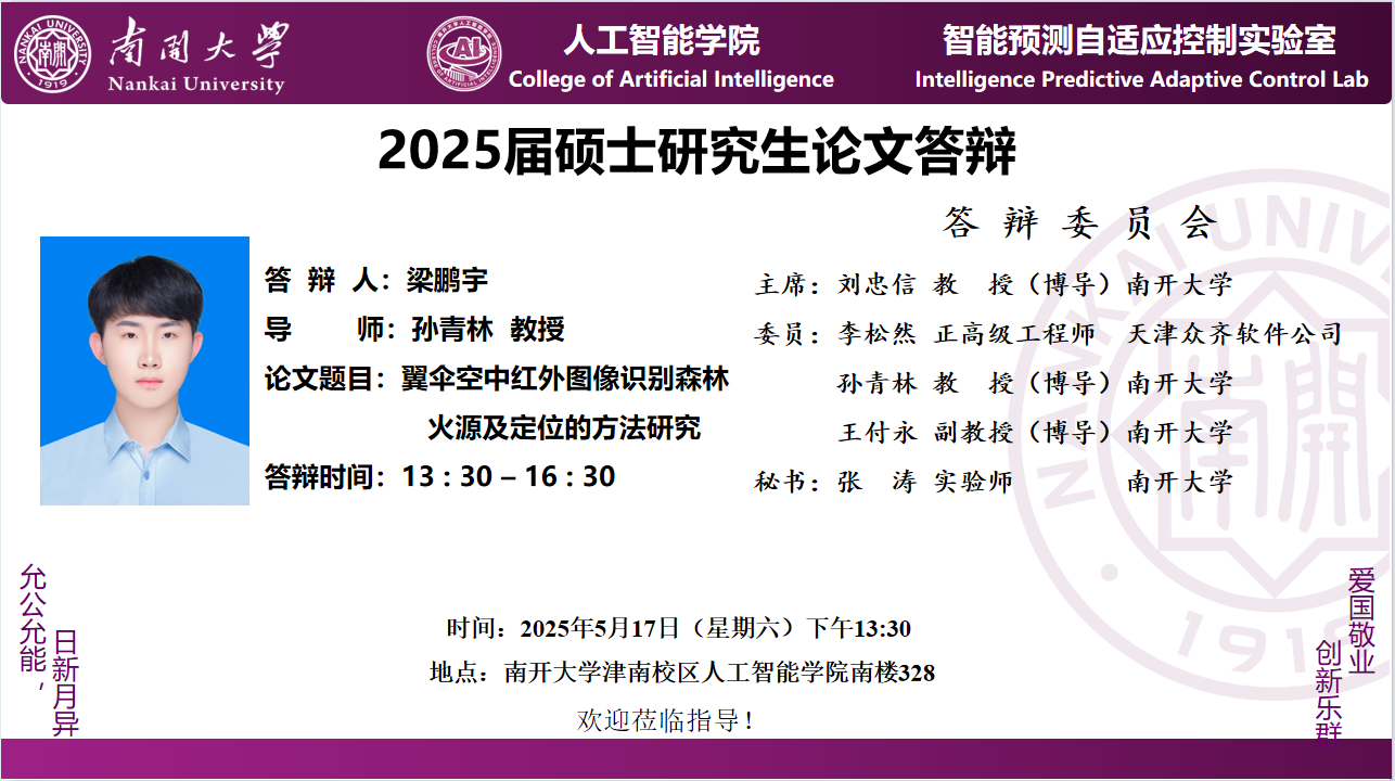 【答辩】2025届夏季毕业答辩公告----自动化系(专硕+联培)