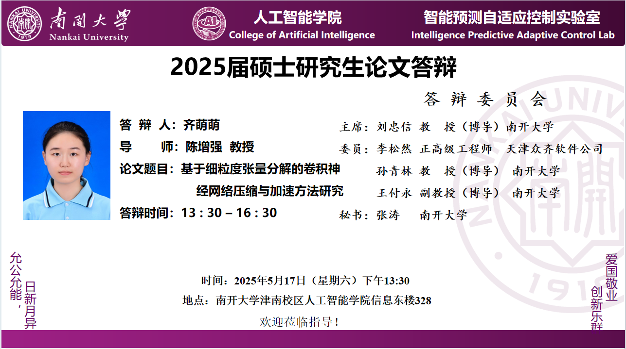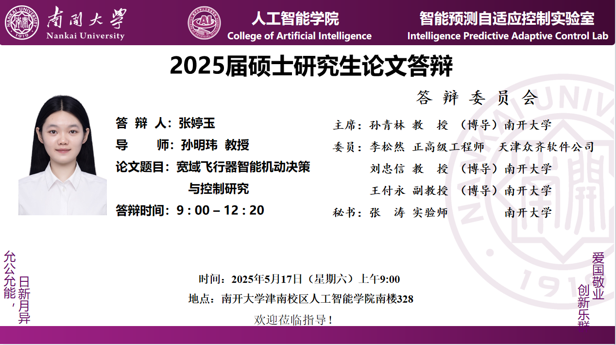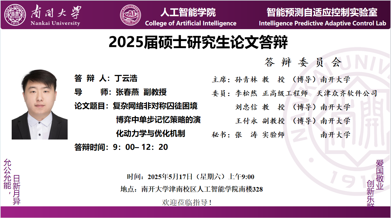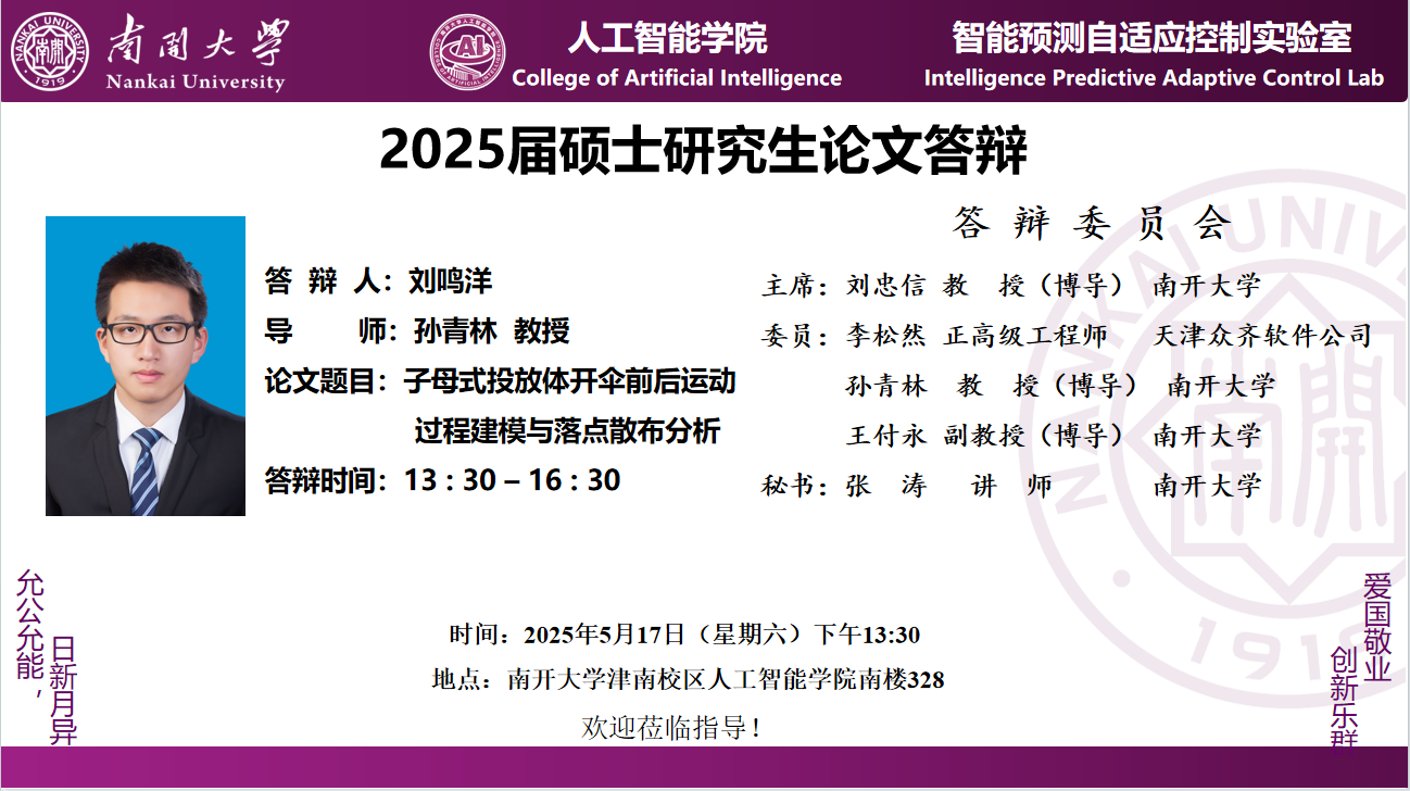 【答辩】2025届夏季毕业答辩公告----自动化系(专硕+联培)