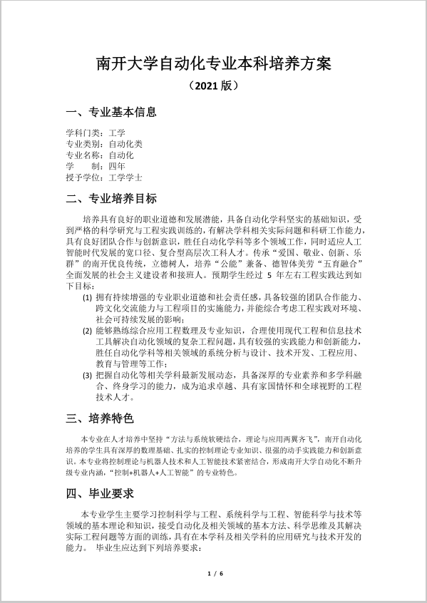 伟德国际victor1946自动化专业本科培养方案 (2021版)